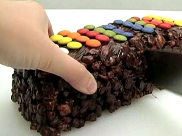 Рецепт вкусного шоколадного торта.Состав: шоколад , сливочное масло, воздушный рис, мед, конфеты в глазури.