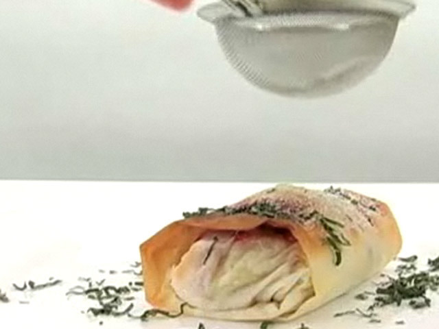 Низкокалорийный десерт со свежими фруктами. 199 калорий.Состав:дыня — 100 гр;клубника — 50 гр;киви — 1/2;масло — 15 гр;корица — 1/2 столовой ложки;слоеное тесто — 30 гр;мята, сахарная пудра.